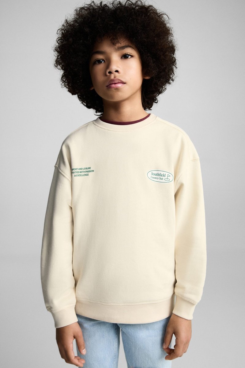 Sweat-shirt coton imprimé - Ecru