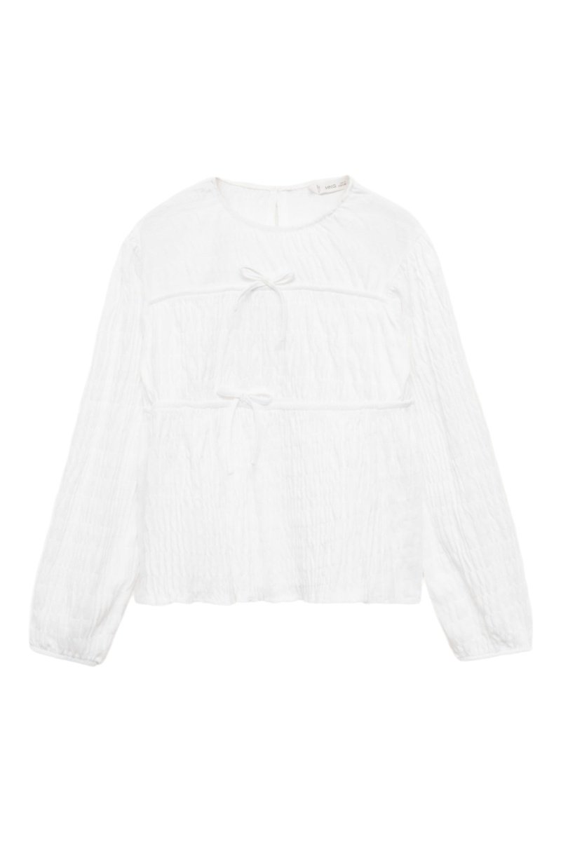 Blouse froncée noeuds - Blanc cassé