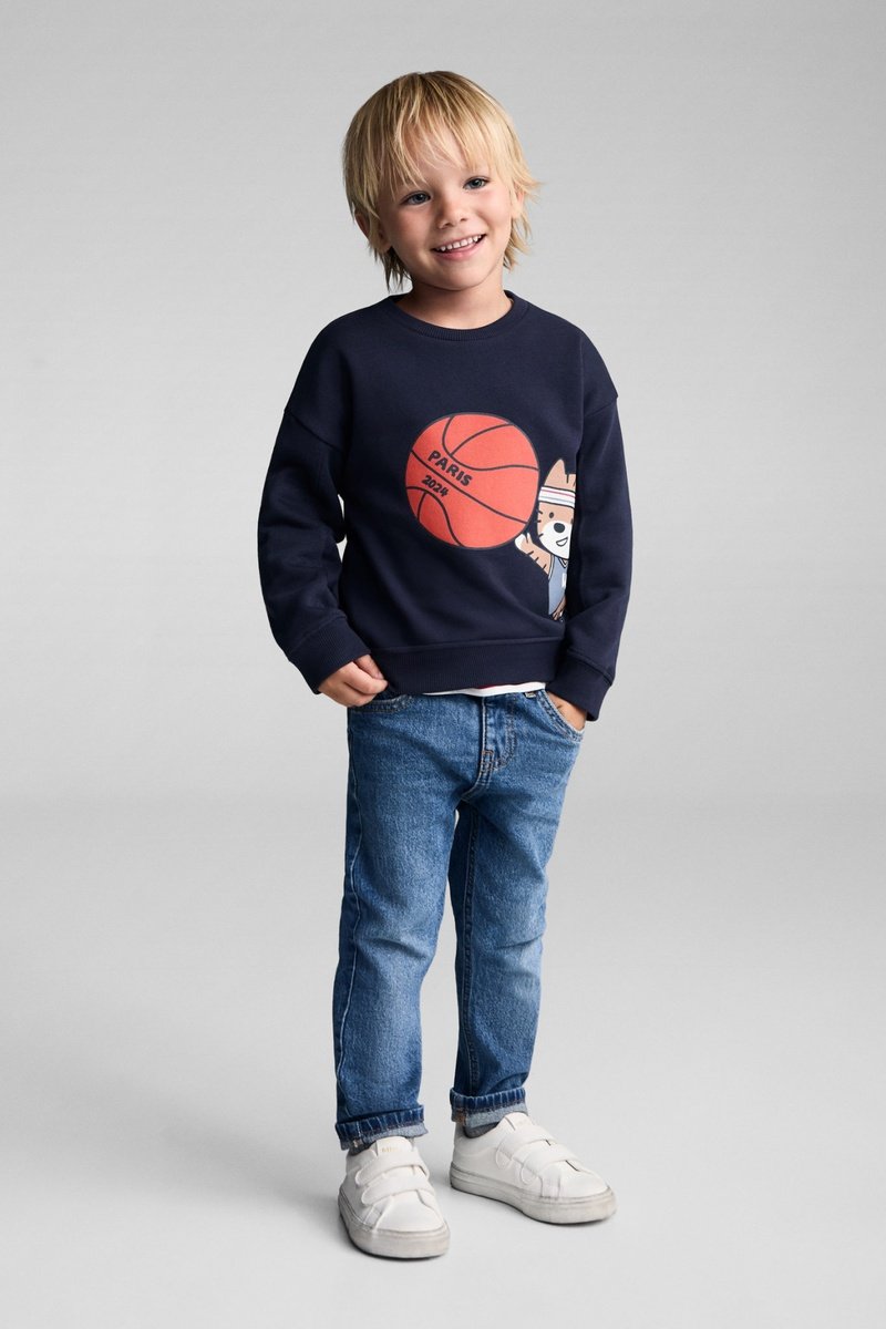 Sweat-shirt coton imprimé - Bleu marine