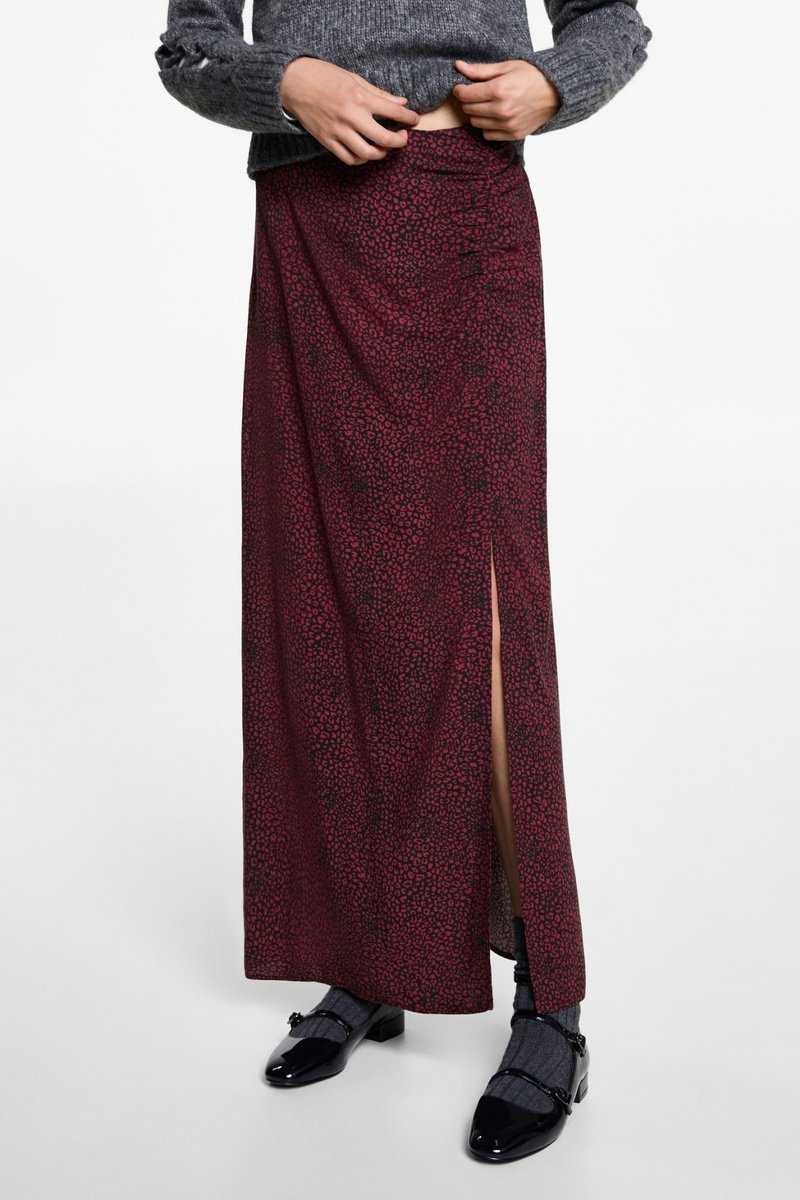 Jupe midi léopard - Rouge