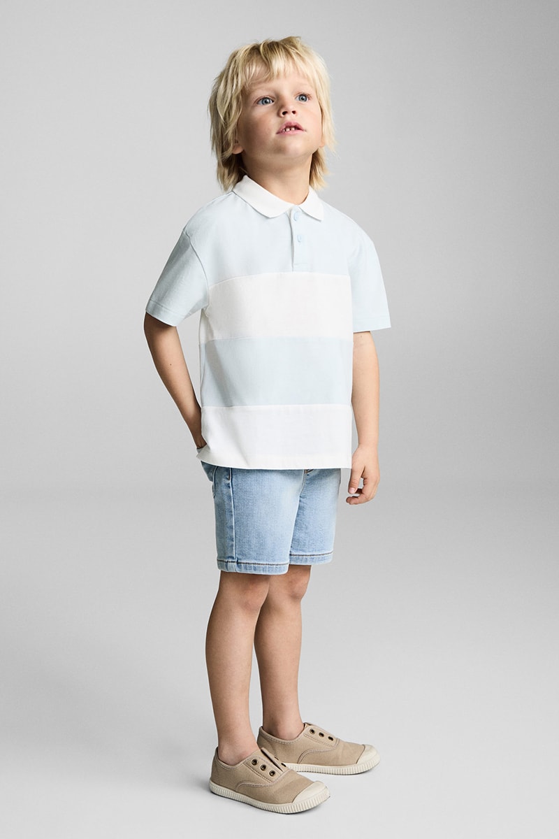 Polo coton à rayures - Bleu clair