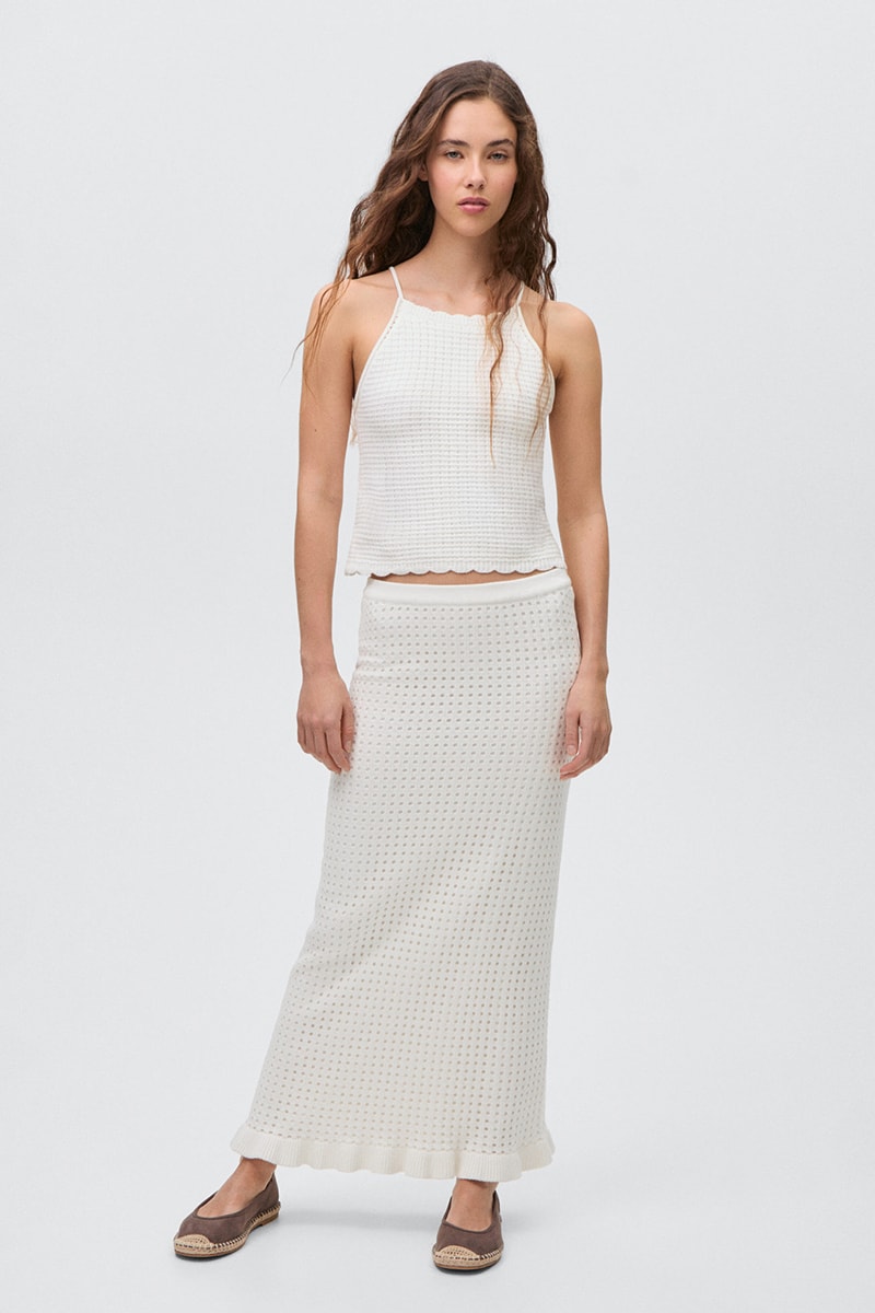 Jupe longue maille - Blanc cassé