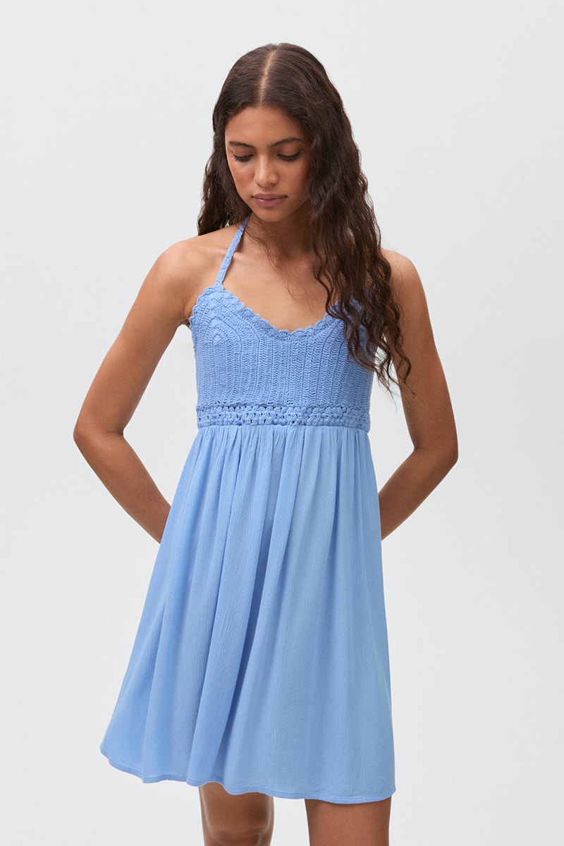 Robe courte crochet - Bleu clair
