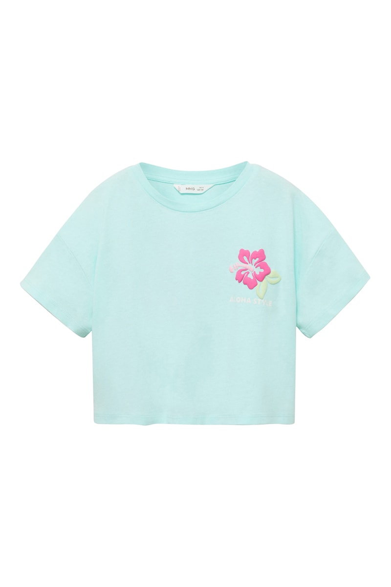 T-shirt crop imprimé - Vert d'eau