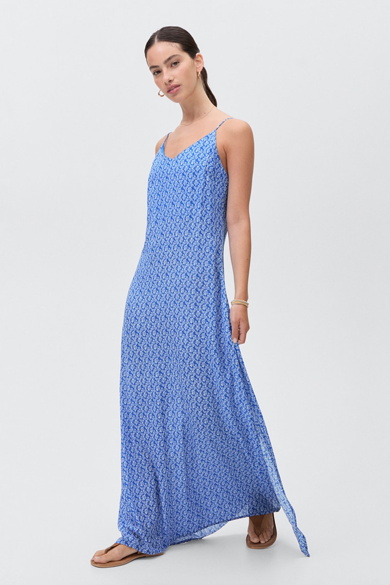 Robe longue en imprimé fleuri - Bleu électrique
