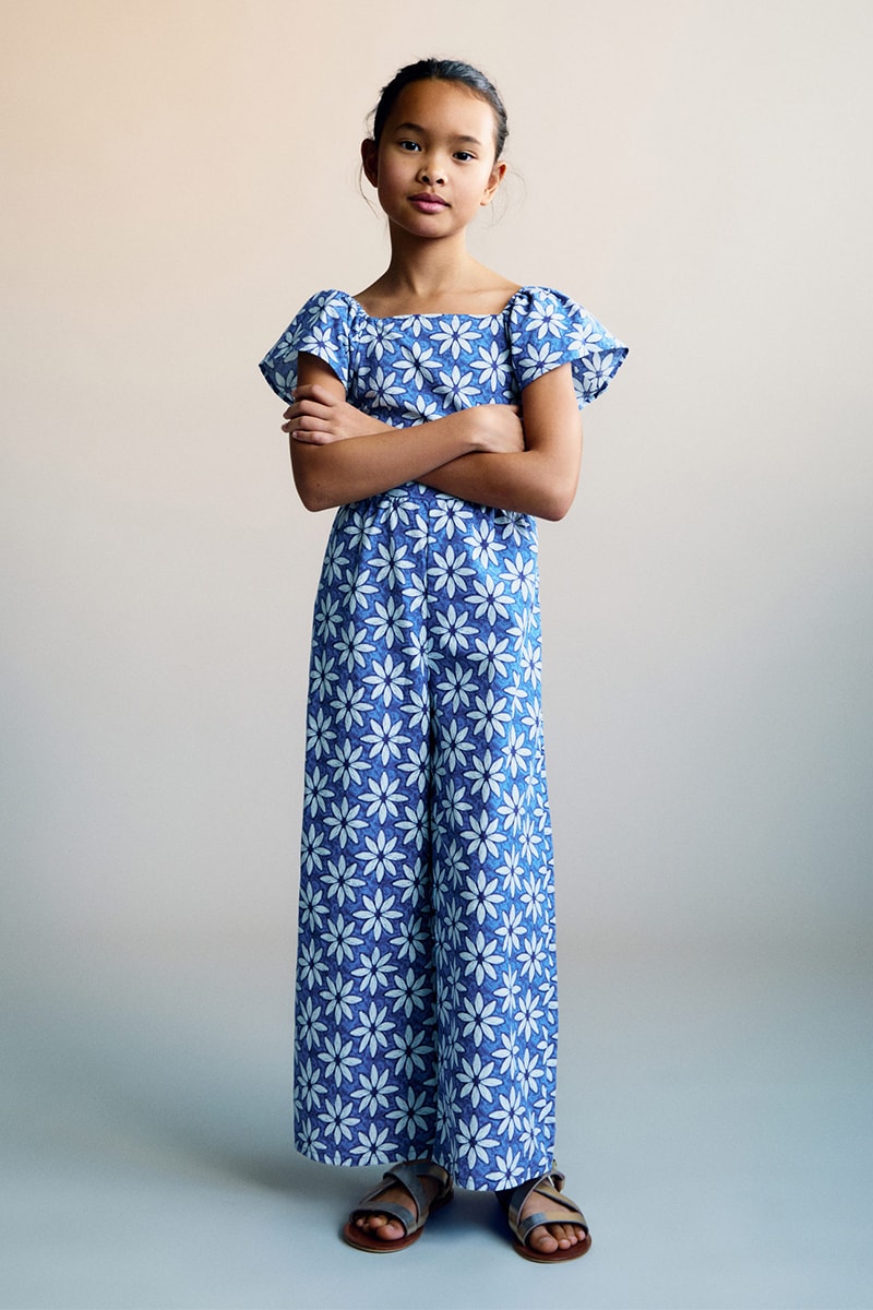 Combinaison à fleurs dos ouvert - Bleu