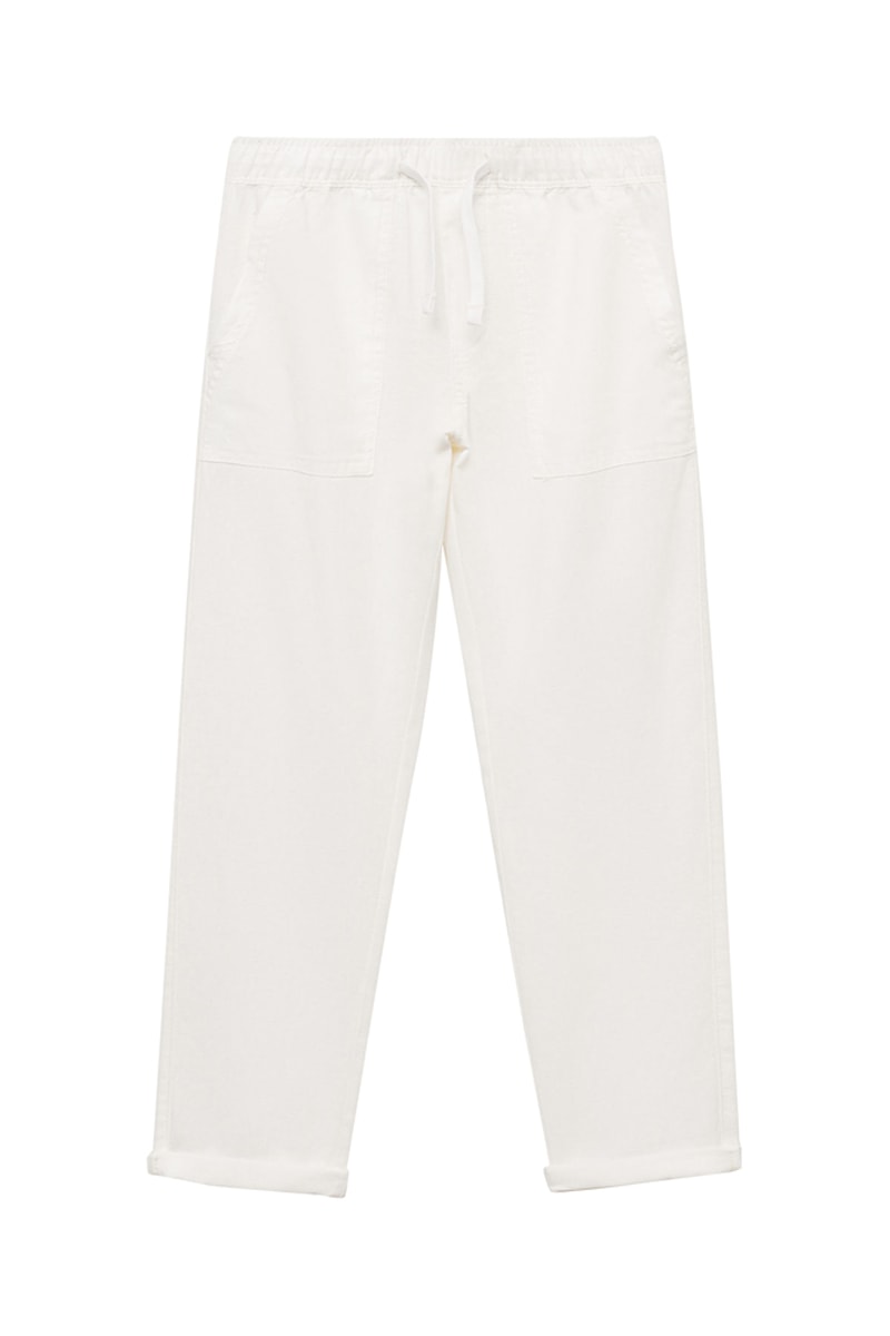 Pantalon lin taille élastique - Blanc