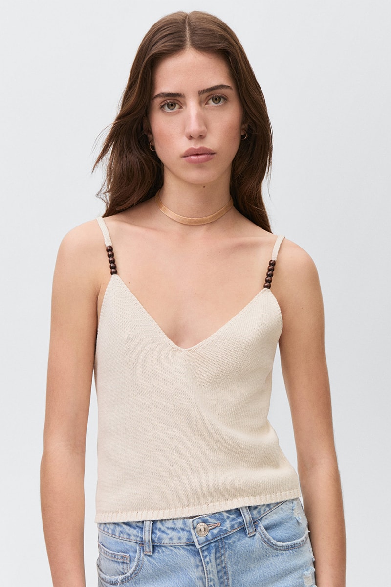Top détail perles - Sable