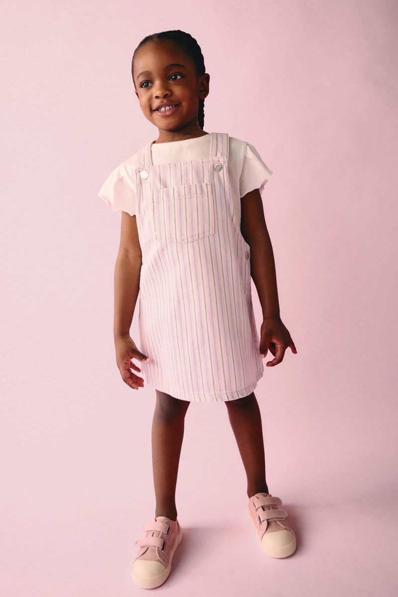 Robe chasuble en jean rayures.