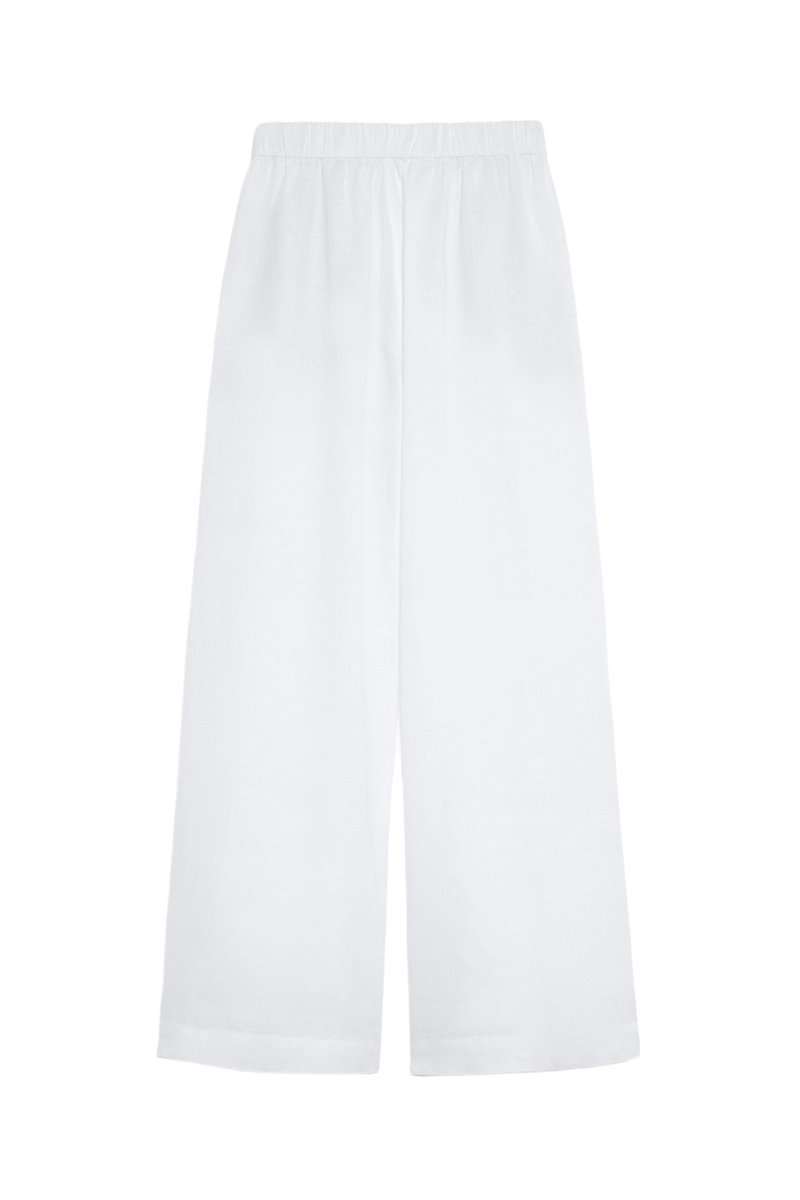 Pantalon taille haute en lin - Blanc