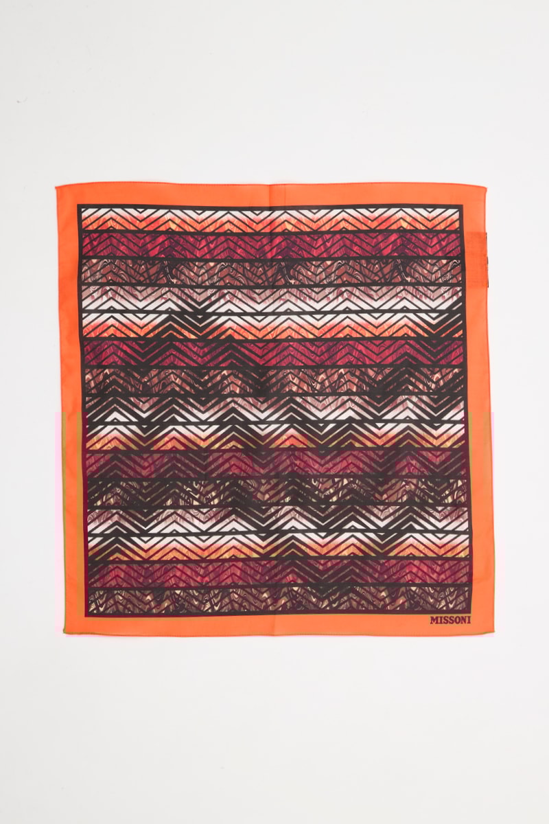 Connue pour sa maille et ses rayures chamarrées, la marque italienne Missoni égaie vos looks grâce à ses foulards, cravates et écharpes aux couleurs et motifs éclatants !