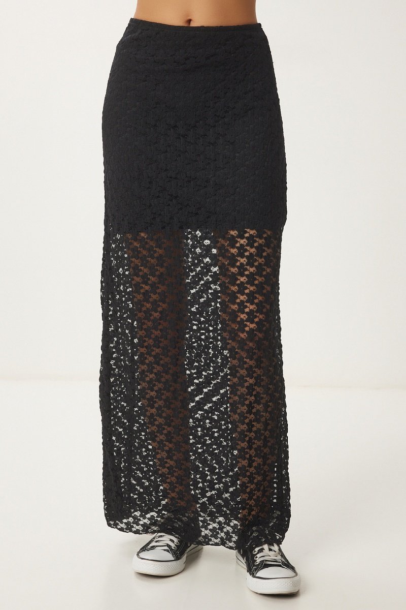 Jupe longue en dentelle - Noir