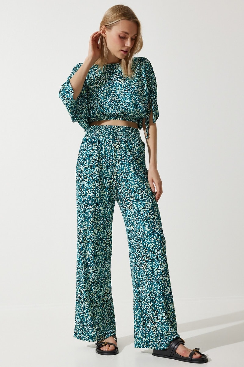 Crop top et pantalon palazzo taille haute - Vert