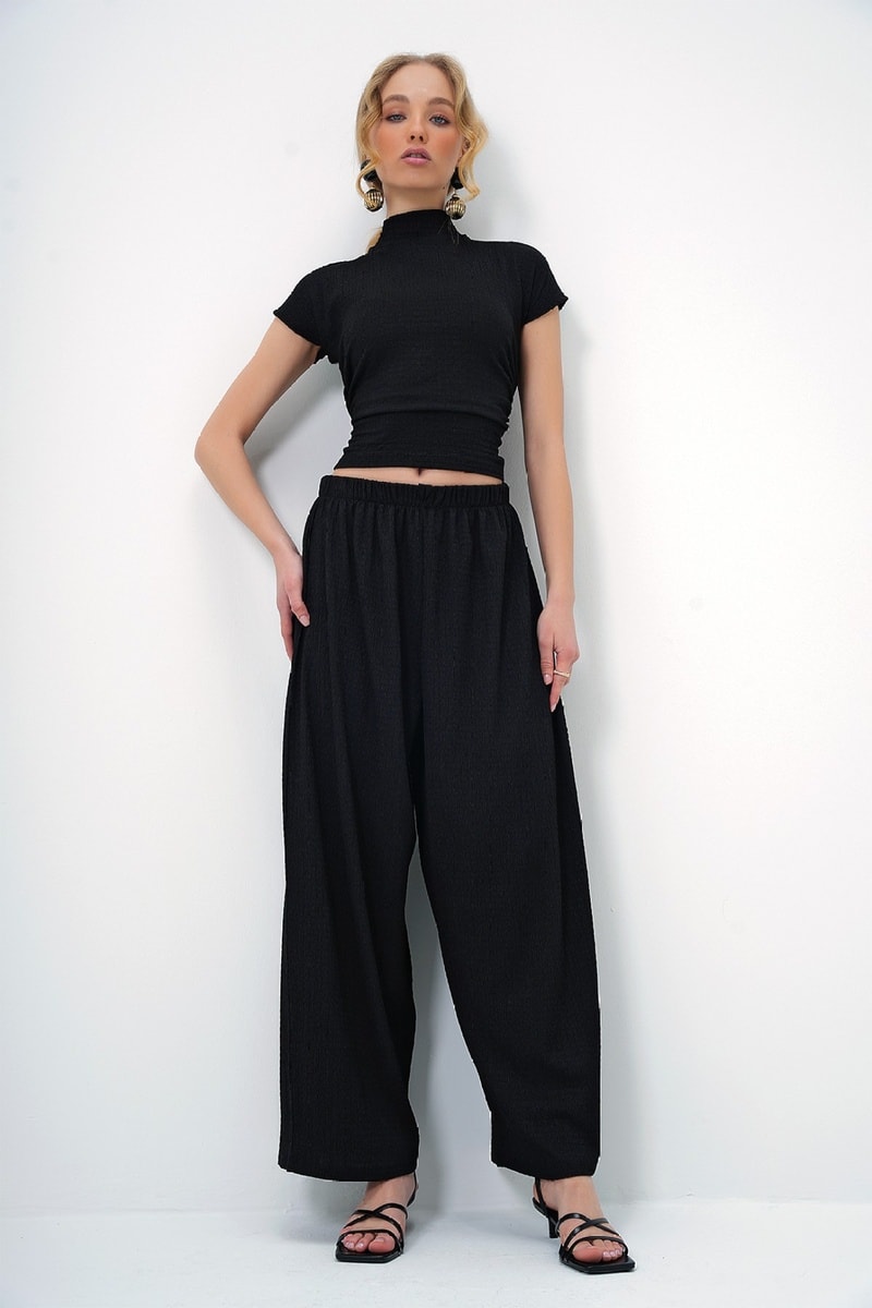 Crop top et pantalon wide legs - Noir