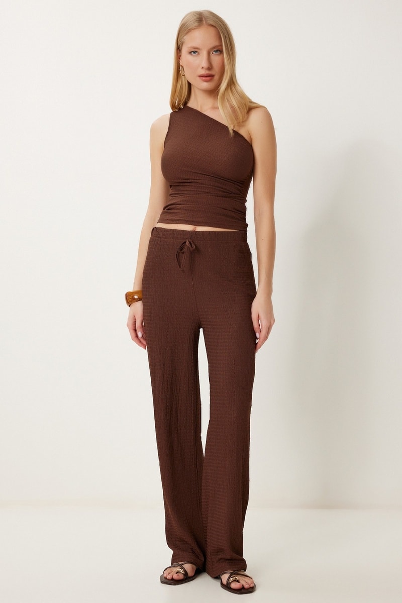 Top asymétrique et pantalon - Marron