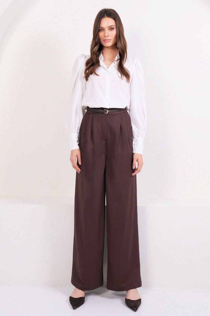 Pantalon palazzo taille haute - Marron