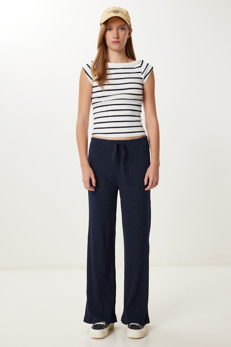 Pantalon wide legs en maille côtelée.