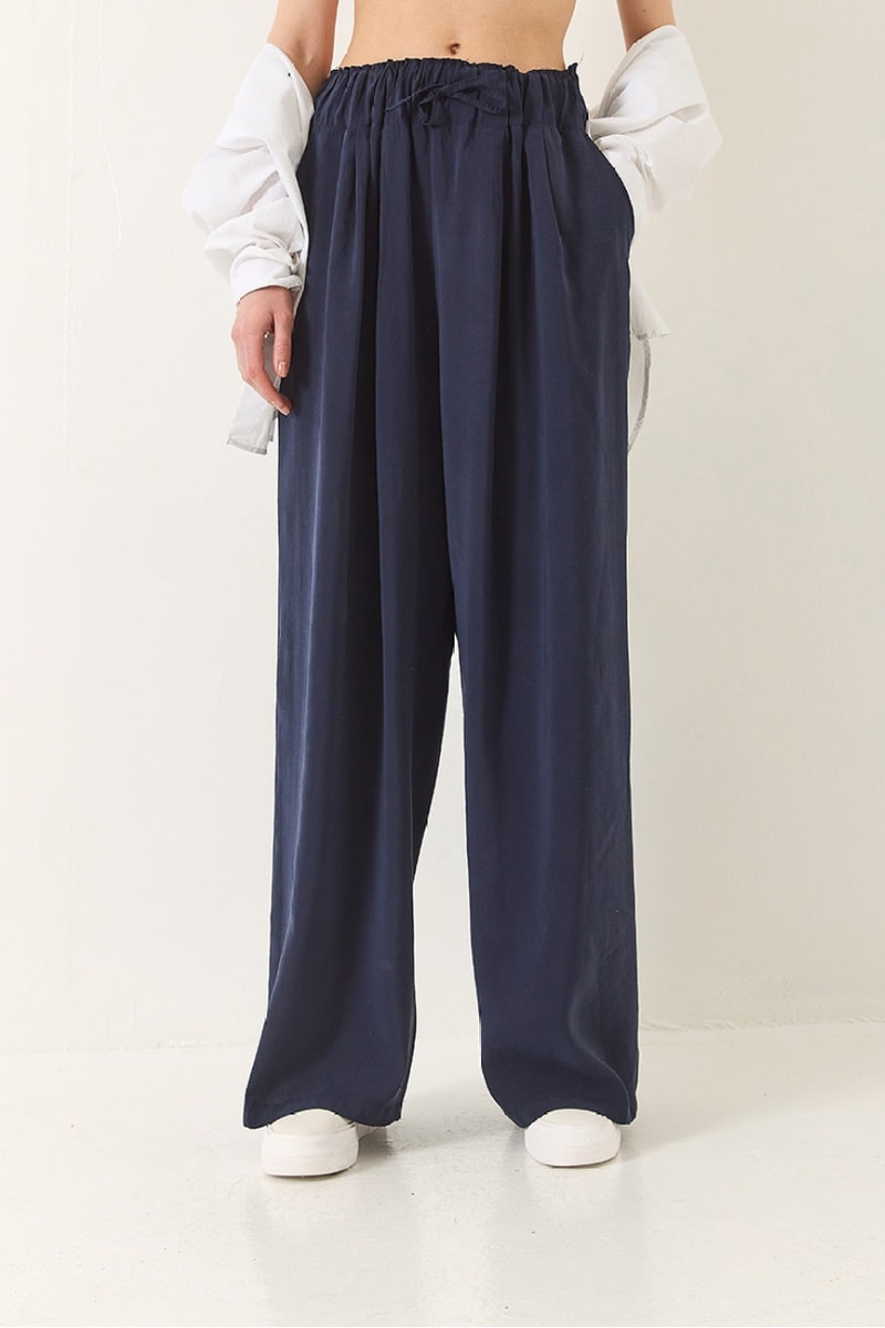 Pantalon palazzo taille haute - Bleu marine
