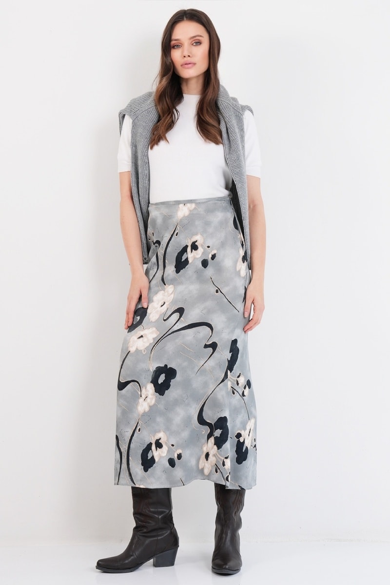 Jupe midi taille haute - Gris et bleu nuit