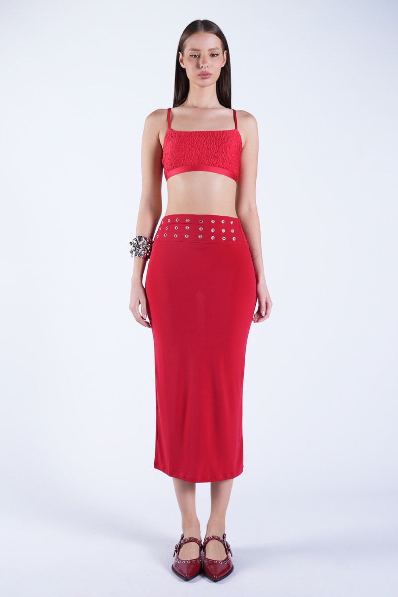 Jupe fourreaux taille haute - Rouge