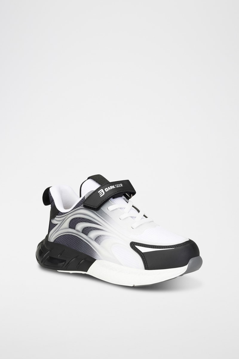 Fermeture à lacets et par scratch.