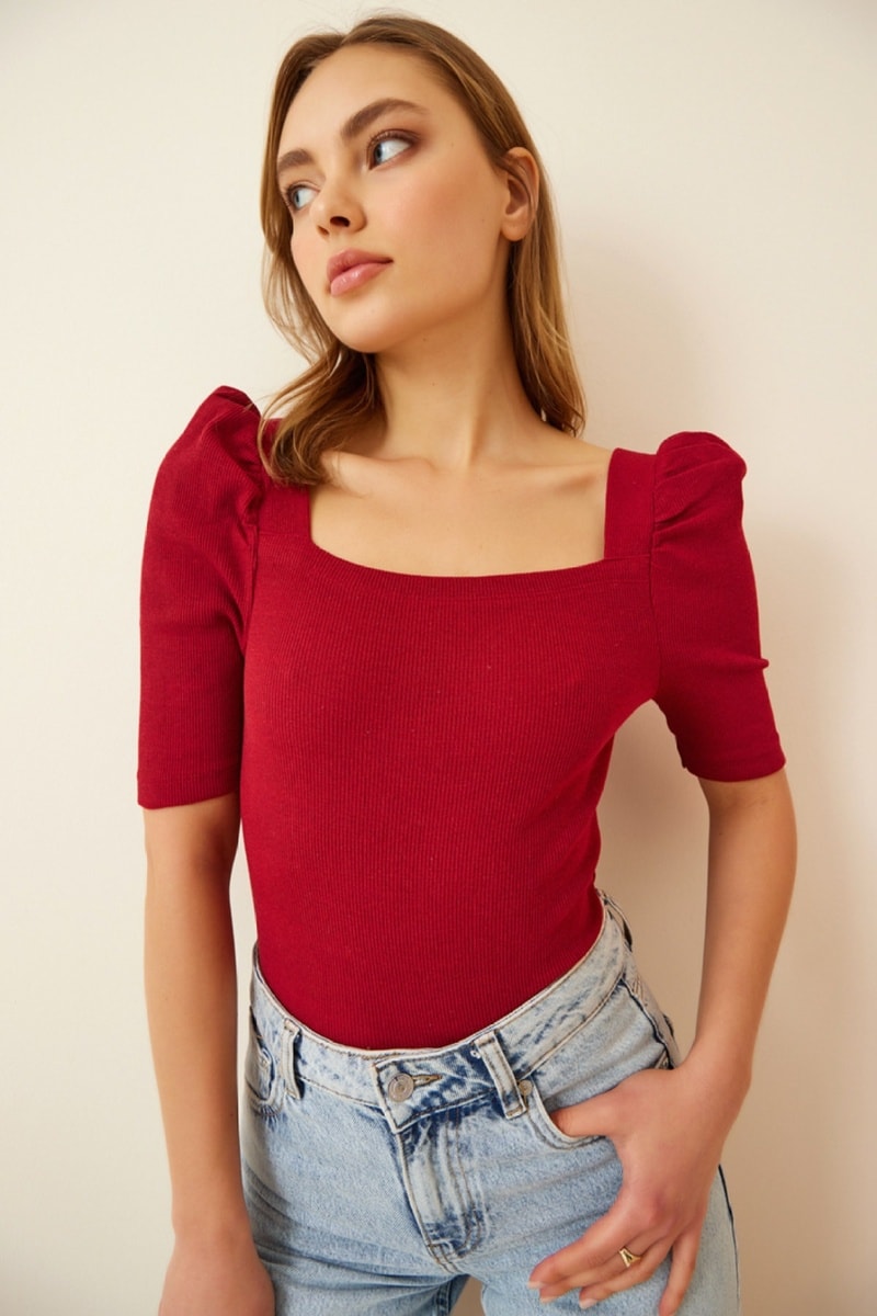 Top à manches mi-longues bouffantes.