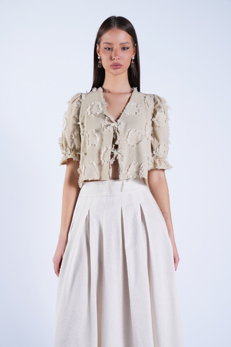 Veste à manches courtes volantées.