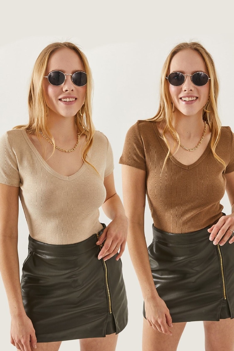 2 tops - Camel et gris clair