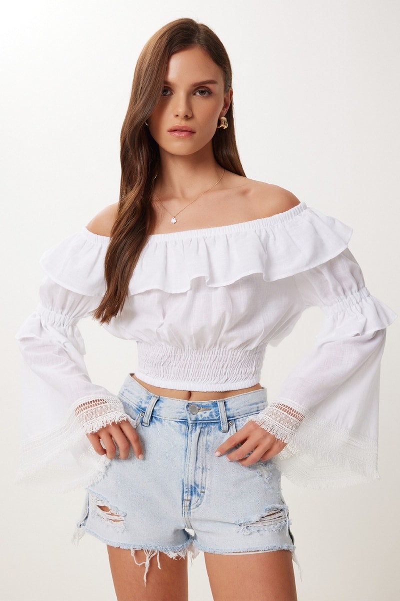 Volants en haut et sur les manches.