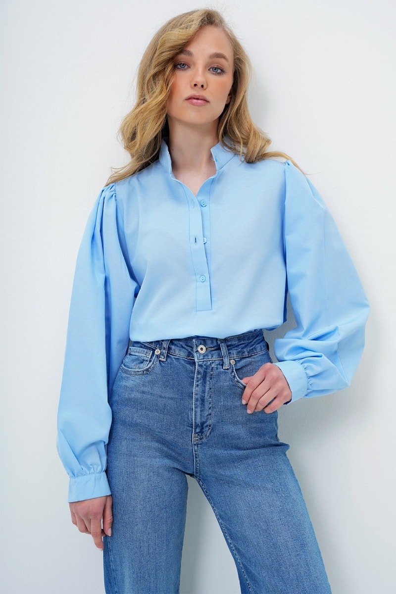Chemisier à manches longues ballon boutonnées.