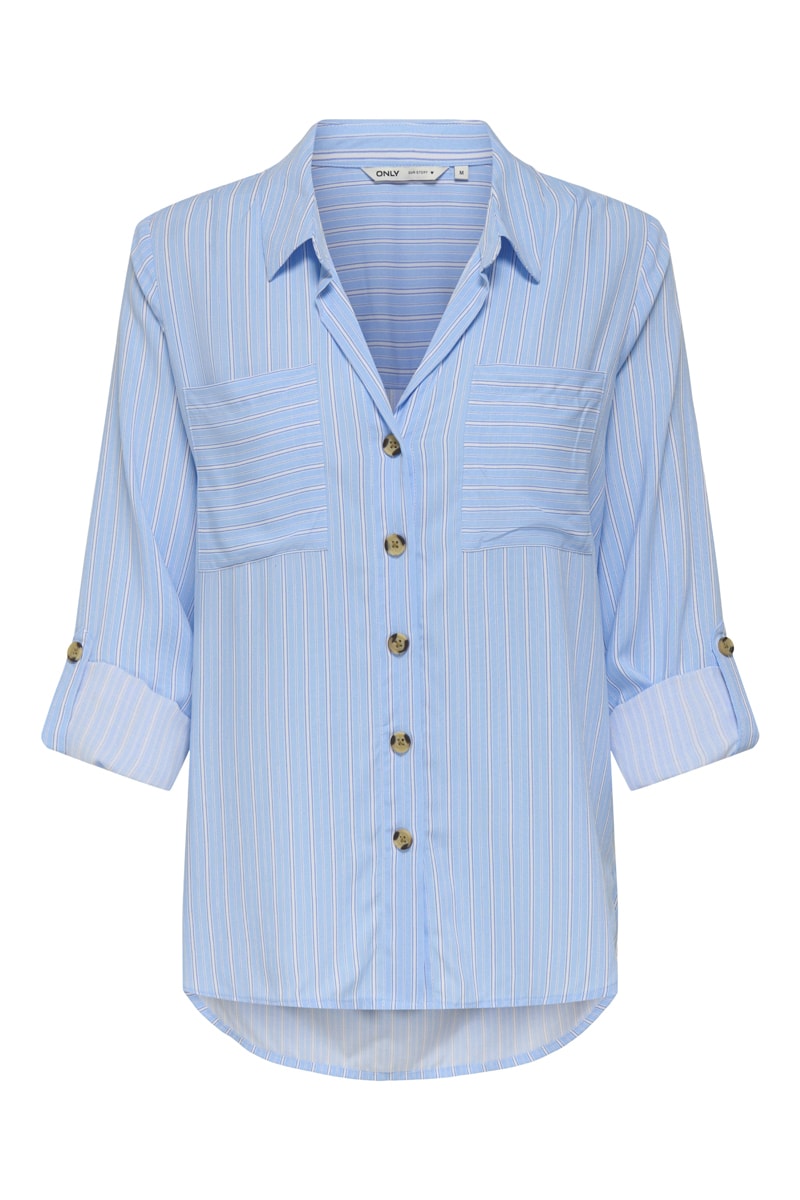 Chemisier à manches longues retroussables avec patte boutonnée.