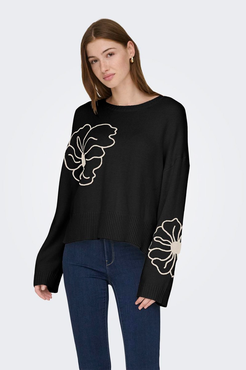 Motifs fleurs brodés sur les manches et devant.