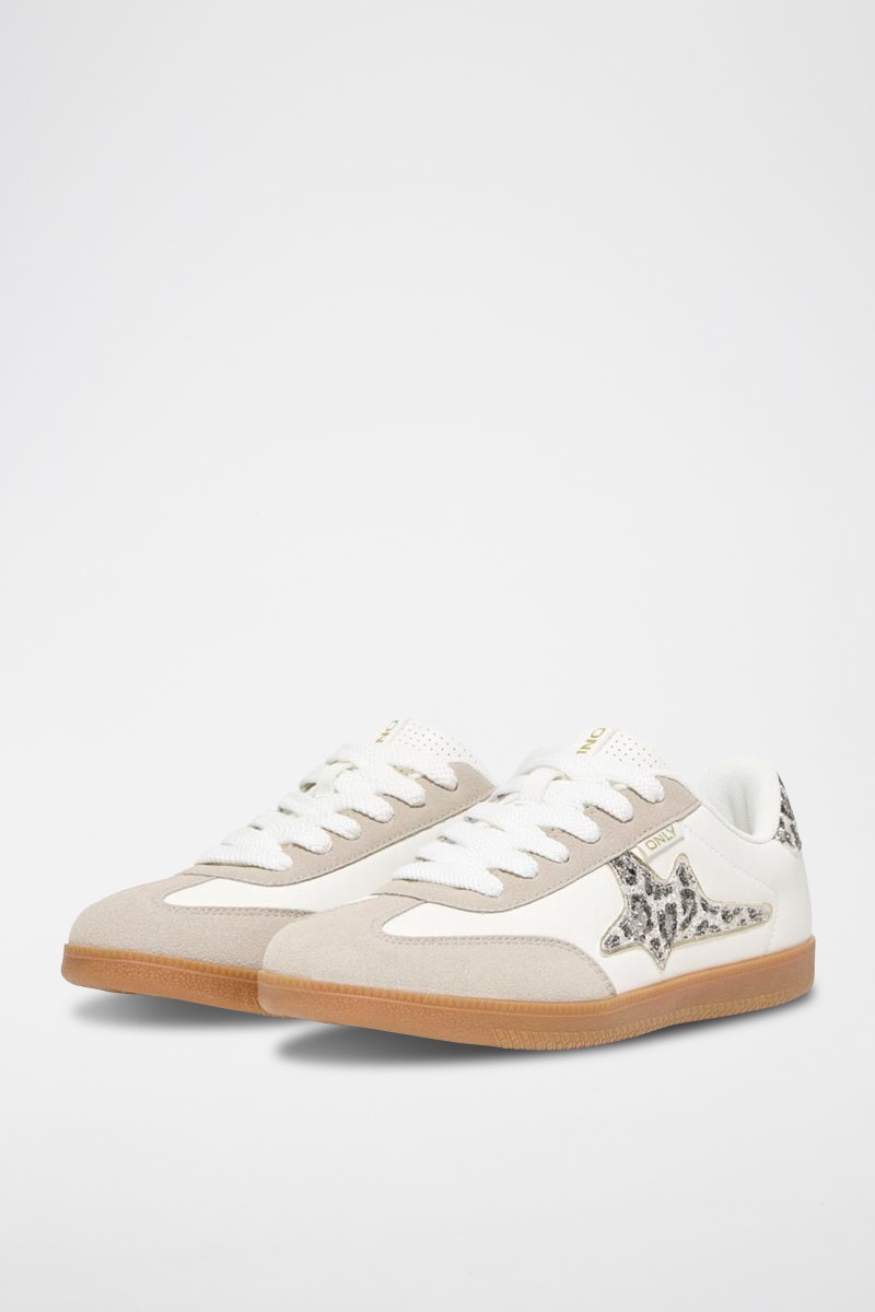 Empiècements à motifs léopard pailletés sur le côté et à l’arrière.