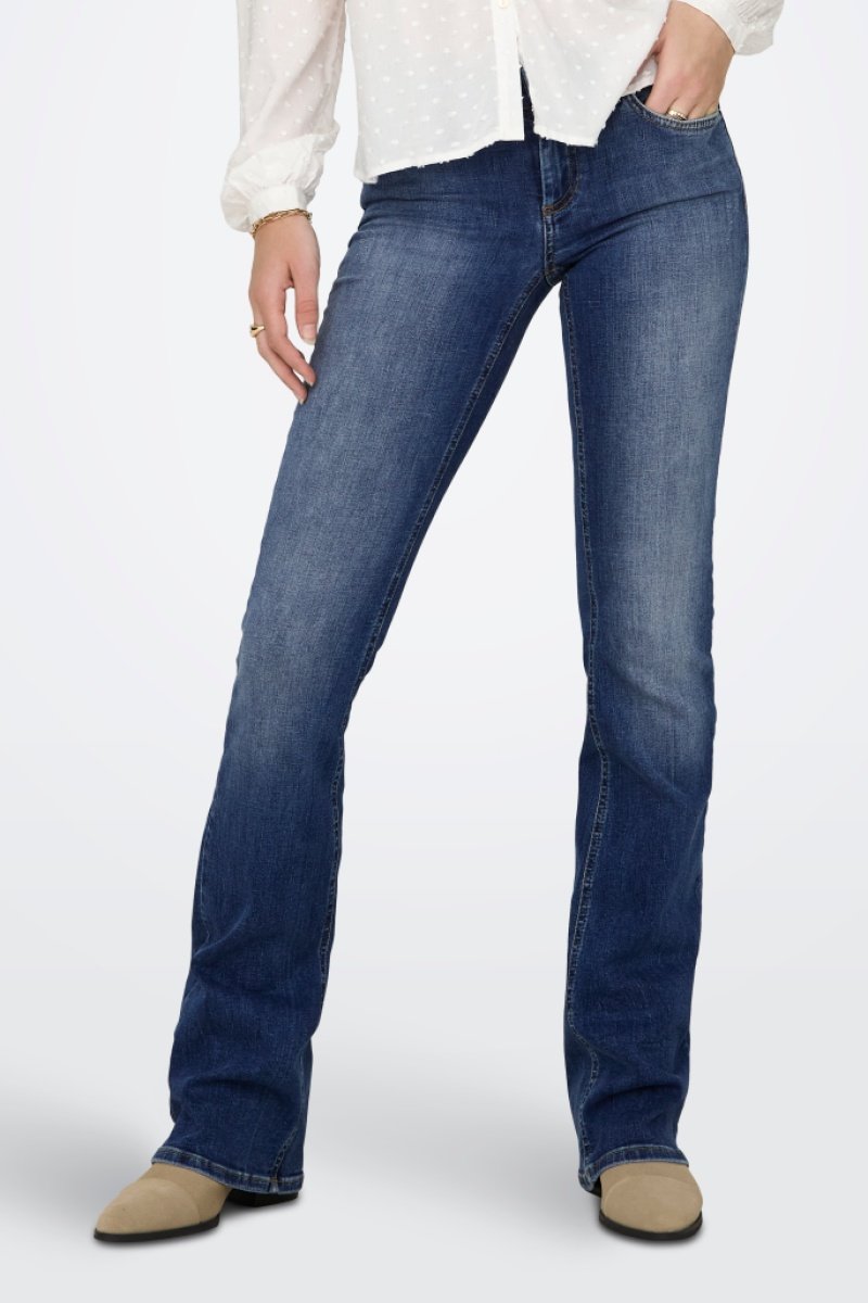Jean flare en coton biologique mélangé.