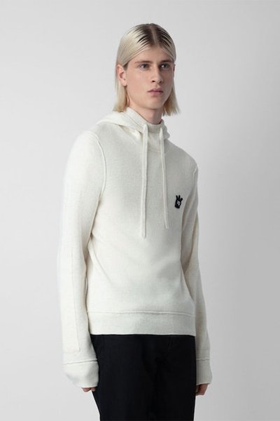 Sweat à capuche en mérinos - Ecru