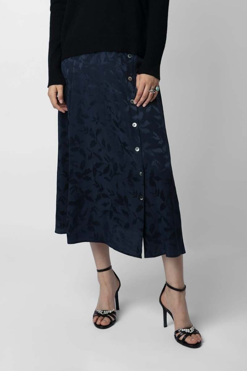 Jupe portefeuille en soie - Bleu marine