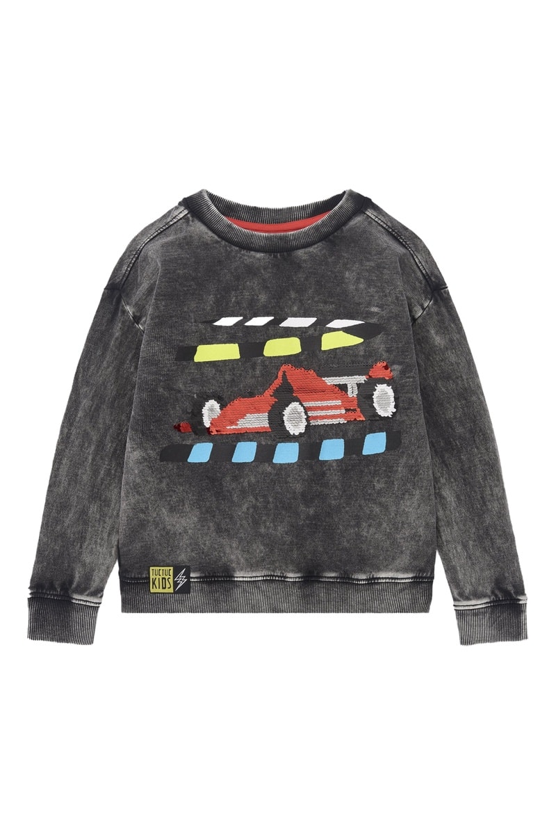 Empiècement avec lettrage, motifs à rayures et fantaisie à sequins devant.