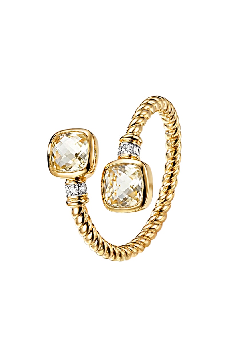 Bague - Argent plaqué or jaune, quartz et diamants