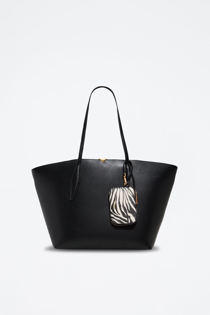 Logo sur la petite pochette zébrée et sur le bas du dos du cabas.