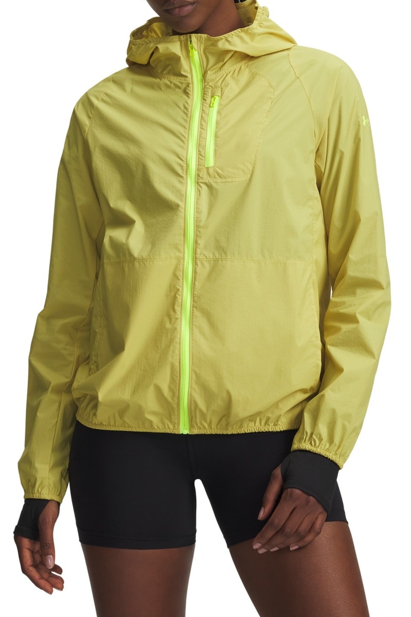 Veste pliable à capuche de running Launch Strorm - Jaune