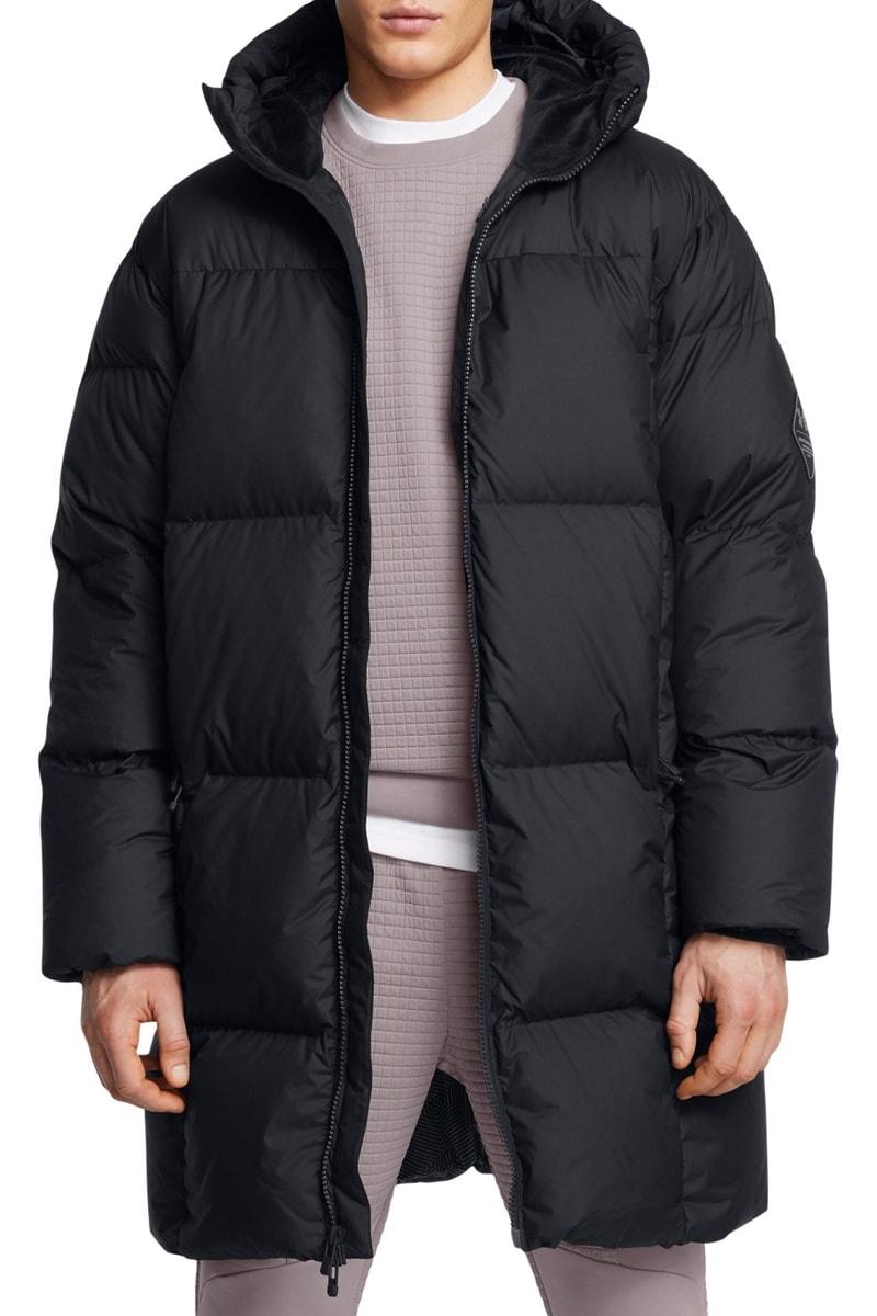 Doudoune à capuche amovible.