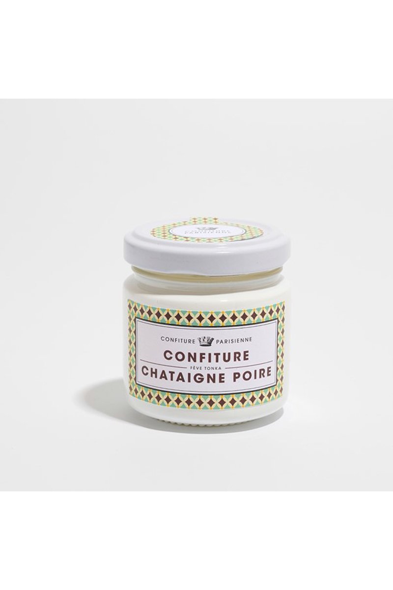 Ingrédients : poire, sucre de canne, châtaigne, citron, pectine d’agrumes, fève tonka.