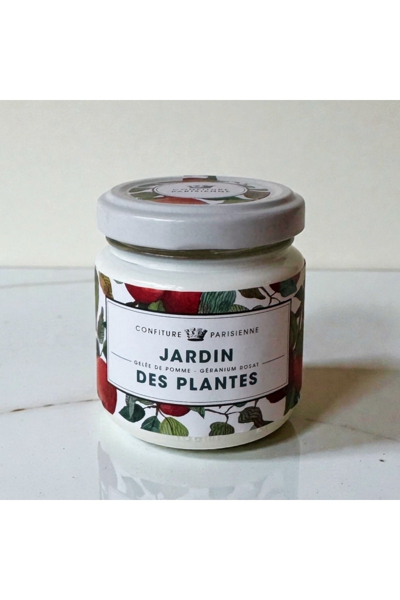 Ingrédients : jus de pomme, sucre de canne, citron, pectine d’agrumes, arôme naturel de géranium rosat.