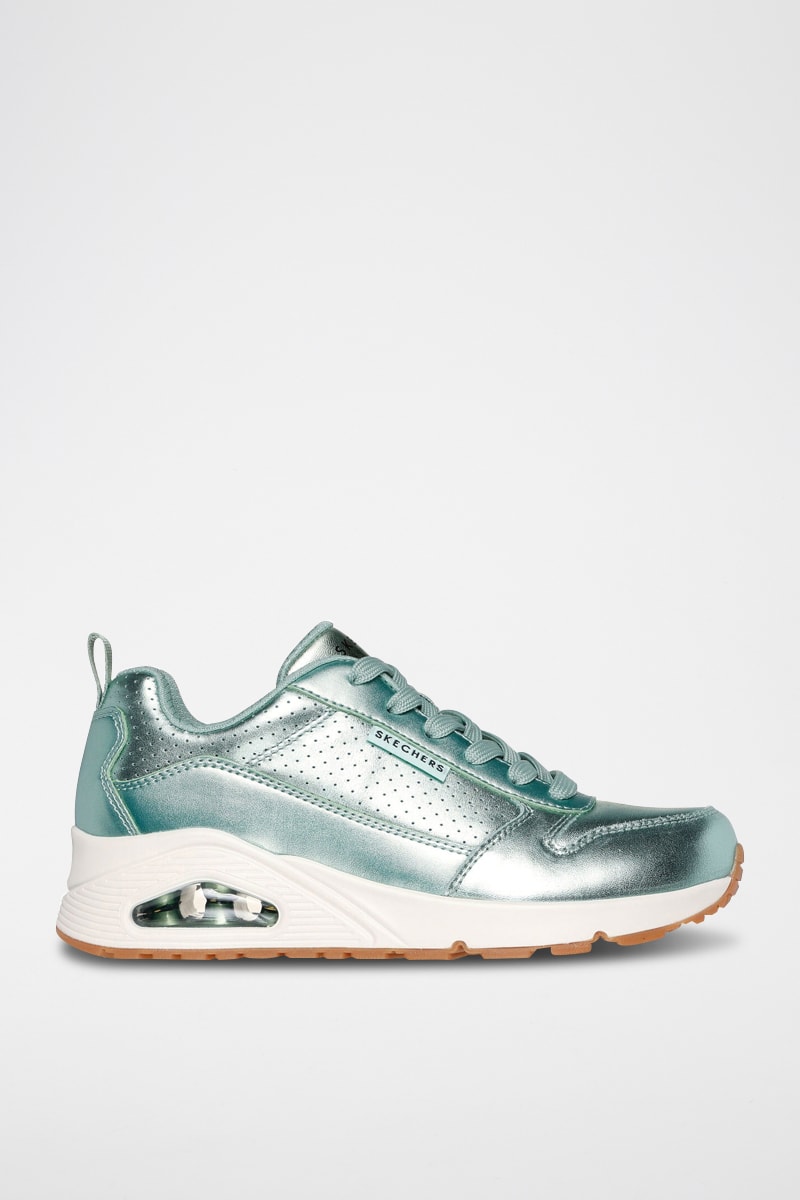 Sneakers compensées en cuir - Vert métallisé