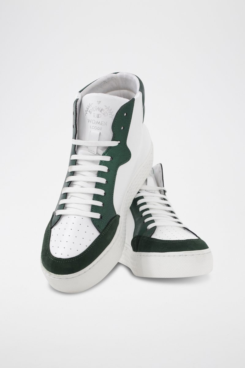 Sneakers montantes en cuir - Blanc et vert - I.Code