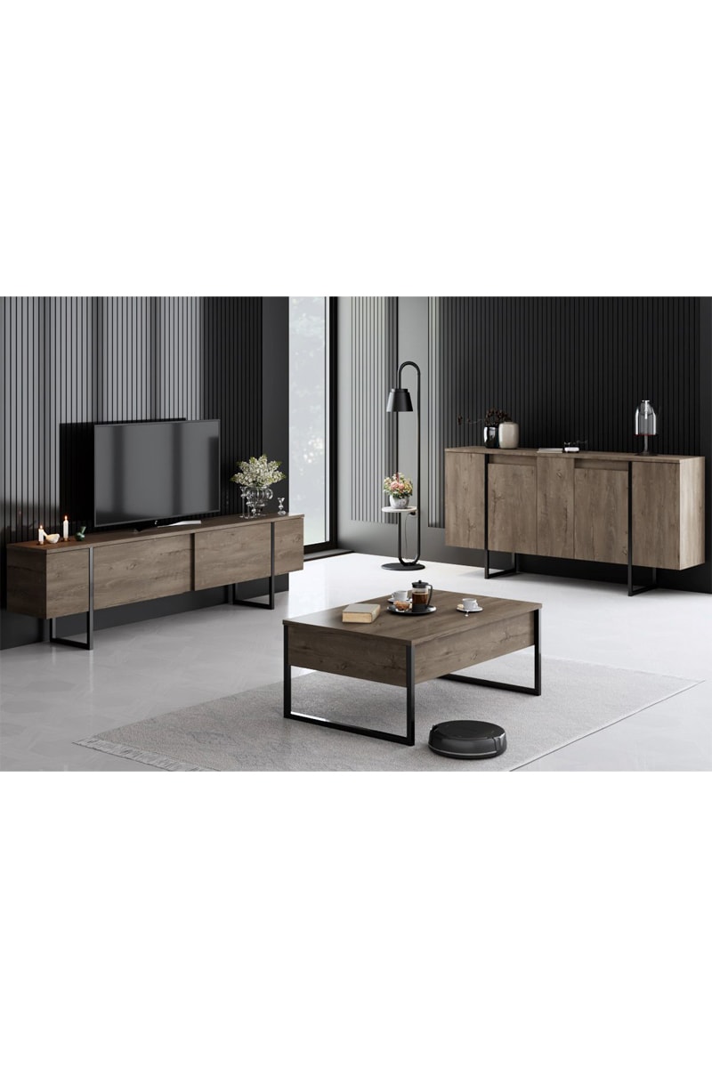 Ensemble de meubles de salon - En noyer - 160 x 35 x 80 / 180 x 30 x 50 / 90 x 60 x 40 cm