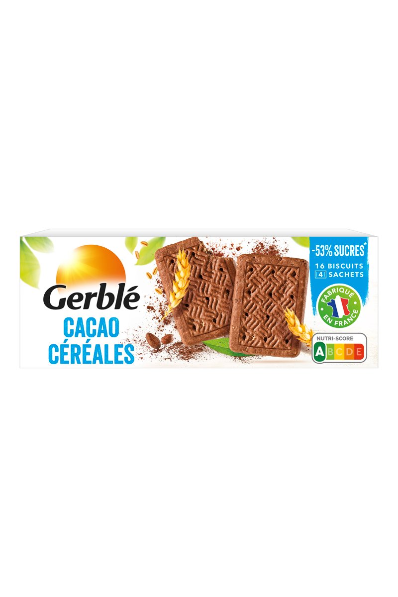 Paquet de biscuits cacao céréales.