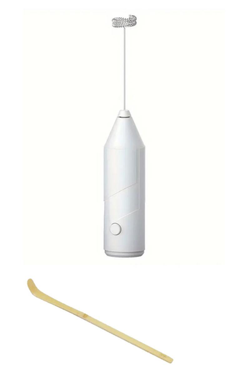 Cuillère pour matche - Bambou et Mousseur à lait électrique en acier inoxydable - Blanc