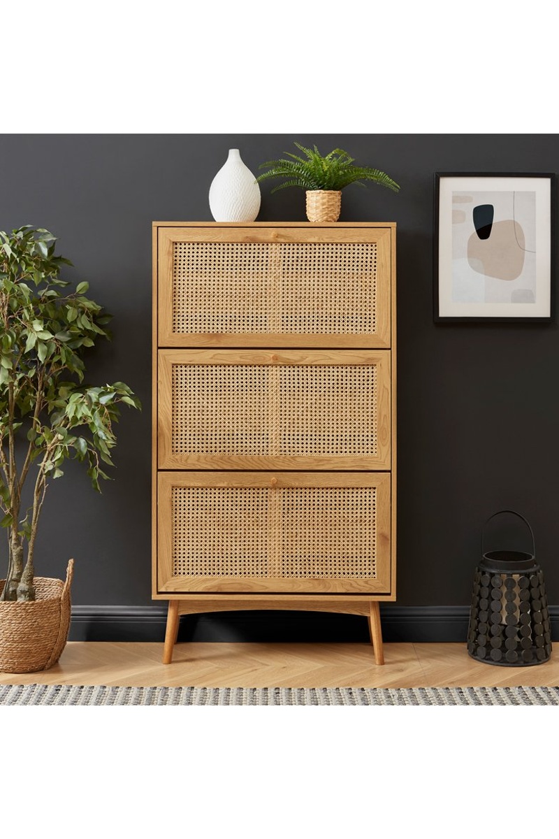 Meuble à chaussures Inès - Imitation chêne et naturel