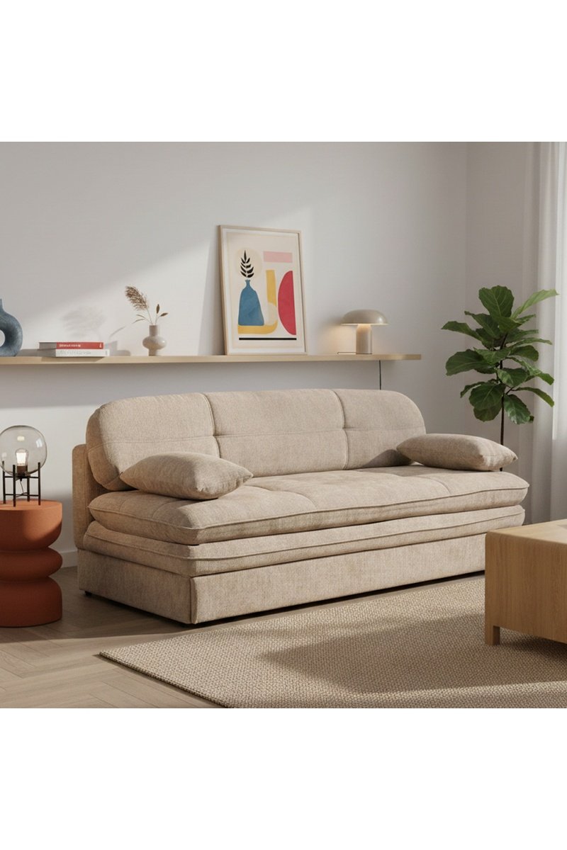 Banquette convertible Cila - Taupe - 3 places - Revêtement en tissu